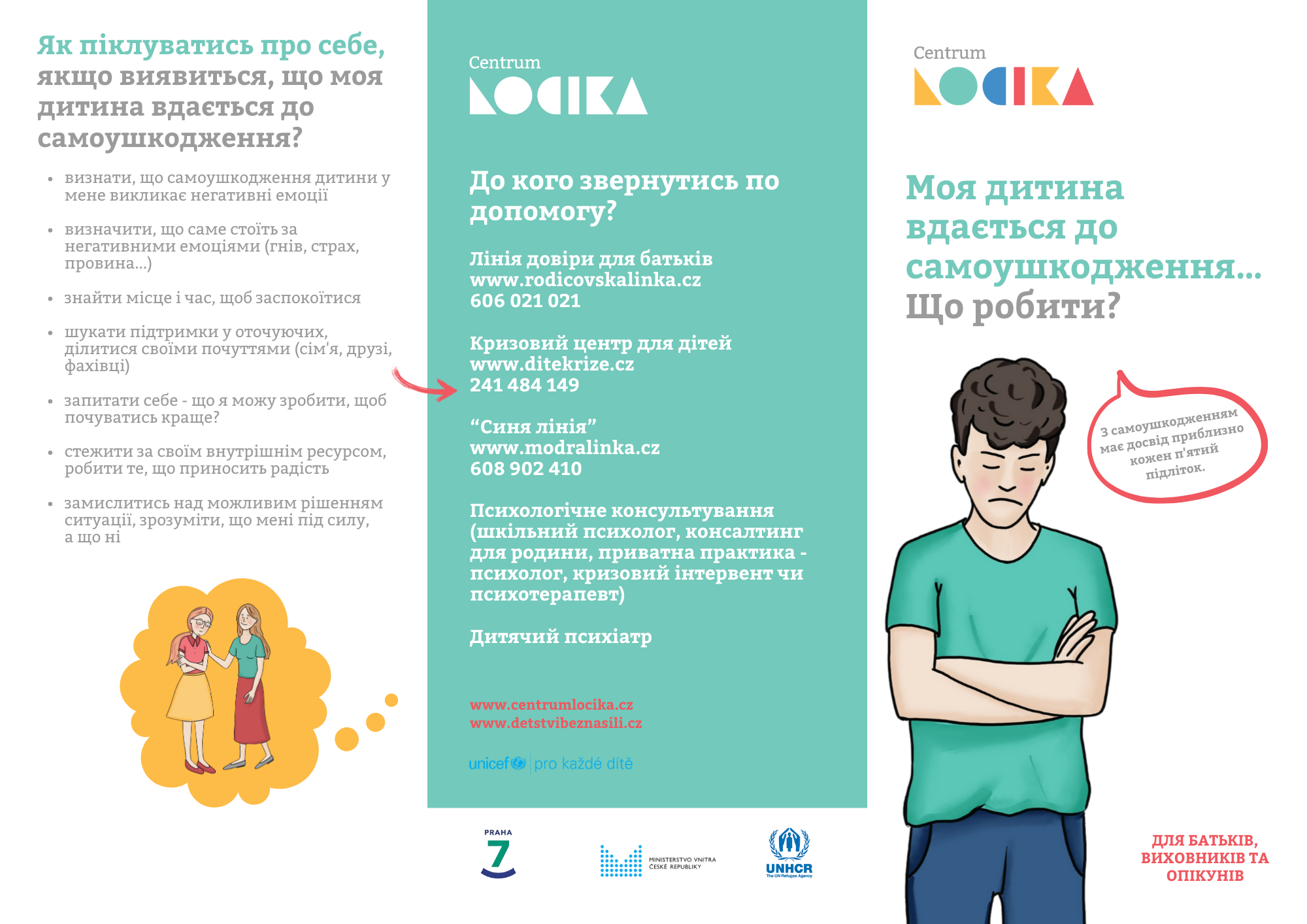 Děkujeme městské části Prahy 7, Ministerstvu vnitra a UNHCR za podporu vzniku a překladu materiálů v rámci projektu Dětství bez násilí pro všechny.